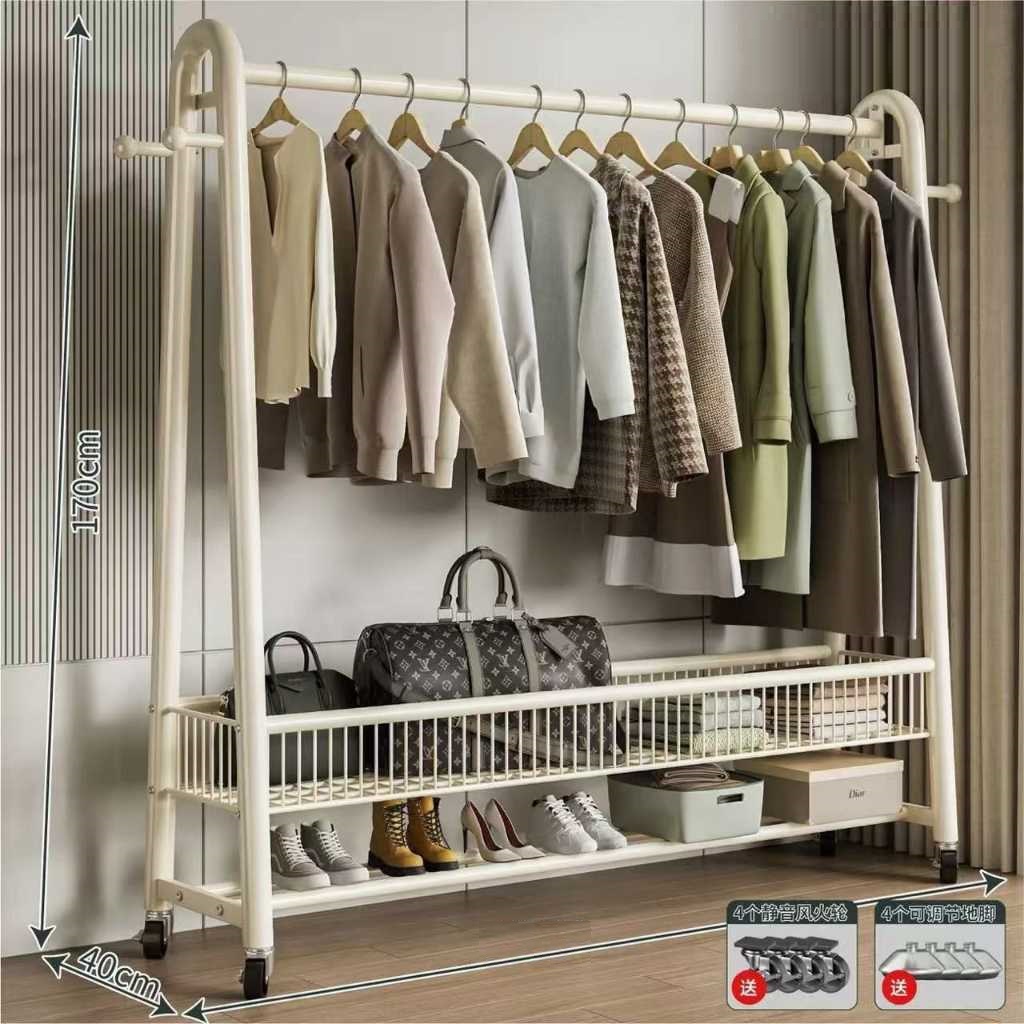 Τροχήλατη κρεμάστρα δαπέδου μεταλλική, με 2 ράφια παπουτσιών και αξεσουάρ, ιδανική ως έπιπλο εισόδου ή για την οργάνωση των ρούχων στο δωμάτιό σας.