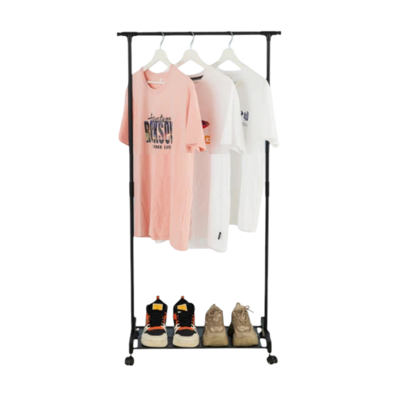 Τροχήλατη κρεμάστρα δαπέδου με ράφι παπουτσιών – 901 – 522176 – Black