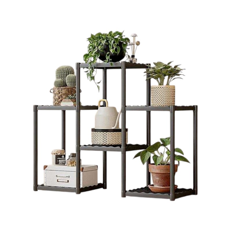Διακοσμητική ραφιέρα δαπέδου με 6 τετράγωνα ράφια, συναρμολογούμενη, με μεταλλικό σκελετό και πλαστικά ανθεκτικά ράφια, ιδανική για την οργάνωση φυτών και την διακόσμηση χώρου.