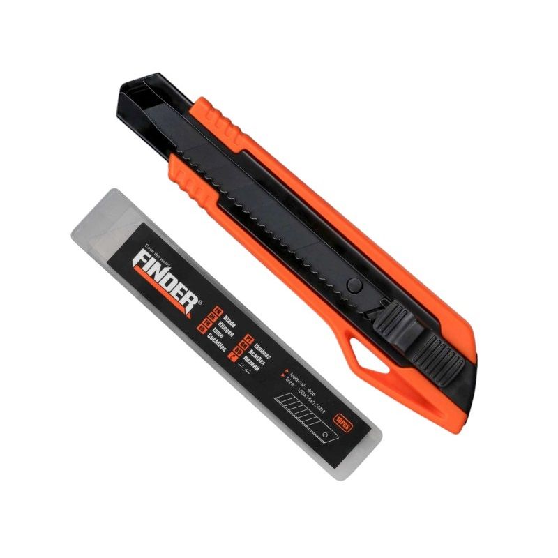 Κοπίδι-Φαλτσέτα 18mm, τη νέας σειράς Finder Max Series, με ατσάλινη λεπίδα και εργονομικό σχεδιασμό με κλείδωμα ασφαλείας.