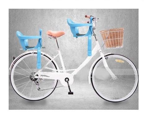 Παιδικό πλαστικό κάθισμα ποδηλάτου, με δυνατότητα ασφαλούς τοποθέτησης είτε πίσω από τη σέλα, είτε μπροστά στο τιμόνι χάρη στα ατσάλινα στηρίγματα και την ειδική βάση.