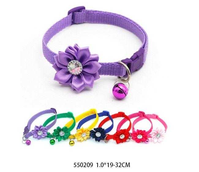 Περιλαίμιο-Κολάρο γάτας με λουλούδι, κουδουνάκι και κούμπωμα με κλιπ. Διαθέτει ρυθμιζόμενο μήκος 19-32cm και πλάτος 1cm.