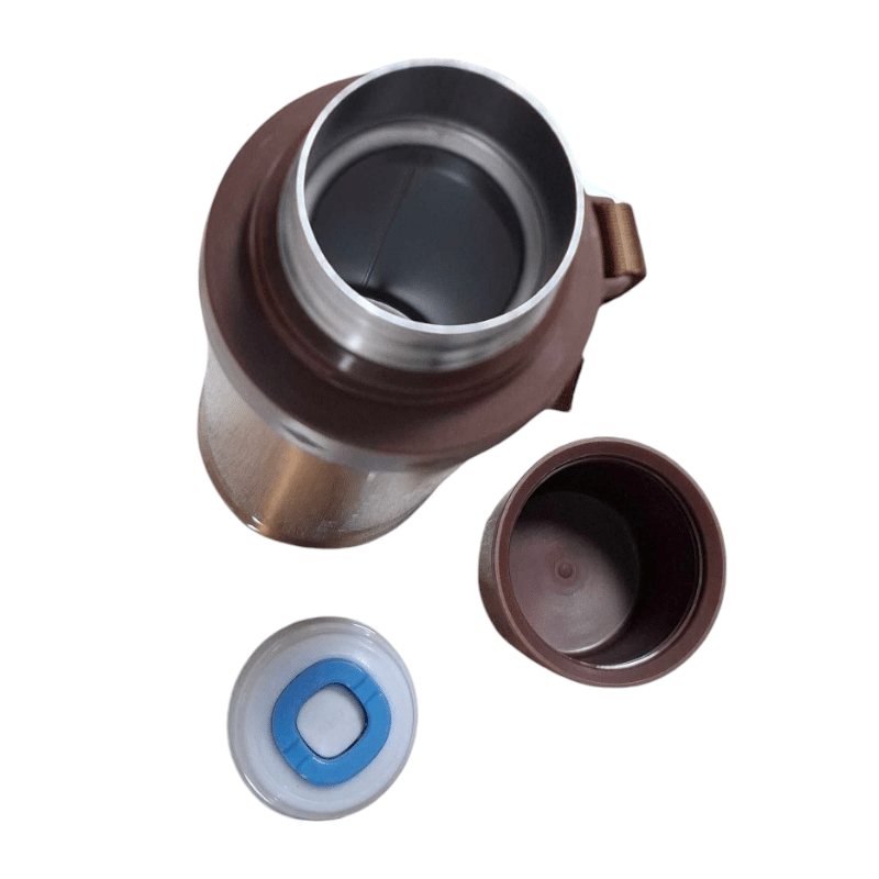 Φορητό παγούρι-θερμός με εσωτερικό από 100% ανοξείδωτο ατσάλι, διπλά τοιχώματα και περίβλημα υψηλής ανθεκτικότητας που διατηρεί τη θερμοκρασία του περιεχομένου σταθερή για ώρες. Το ανοξείδωτο ατσάλι εξασφαλίζει μεγάλη αντοχή στο χρόνο και απόλυτα υγιεινή χρήση χωρίς τις τοξικές ουσίες που περιλαμβάνουν τα κοινά πλαστικά παγούρια. Δεν απορροφάει γεύσεις και μυρωδιές. Διαθέτει βιδωτό καπάκι Vacuum. Εργονομικός σχεδιασμός για εύκολη μεταφορά. Πλένεται πολύ εύκολα.