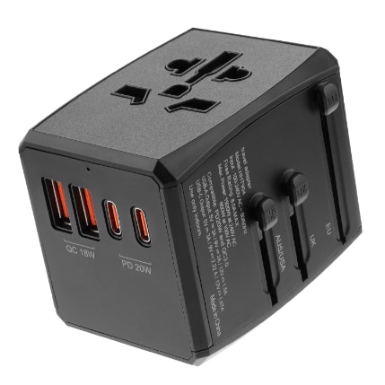 Ένα από τα κύρια χαρακτηριστικά του είναι η δυνατότητα προσαρμογής σε διαφορετικούς τύπους πριζών, όπως των ΗΠΑ, του Ηνωμένου Βασιλείου, της Ευρώπης και της Αυστραλίας. Αυτό επιτυγχάνεται μέσω τεσσάρων ενσωματωμένων βυσμάτων που μπορούν εύκολα να επιλεγούν με τη χρήση ενός συρόμενου μηχανισμού, καθιστώντας τον αντάπτορα εξαιρετικά εύχρηστο και πρακτικό.