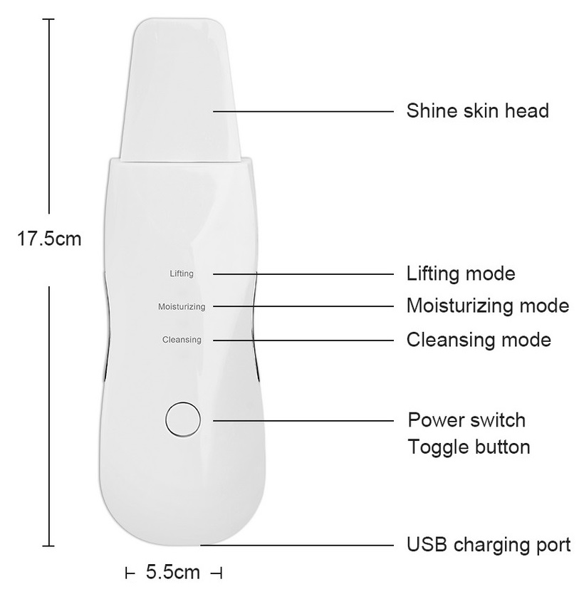 Η συσκευή θα σας βοηθήσει να αφαιρέσετε τους ρύπους από το δέρμα σας χάρη στους κραδασμούς υψηλής συχνότητας. Είναι κατασκευασμένη από ανοξείδωτο ατσάλι και είναι ασφαλής για το ευαίσθητο δέρμα. Χρησιμοποιήστε τη σε υγρό δέρμα και αφήστε τη να αφαιρέσει τους ρύπους, τη λιπαρότητα και τα μαύρα στίγματα για ένα βαθύ καθαρισμό δέρματος.